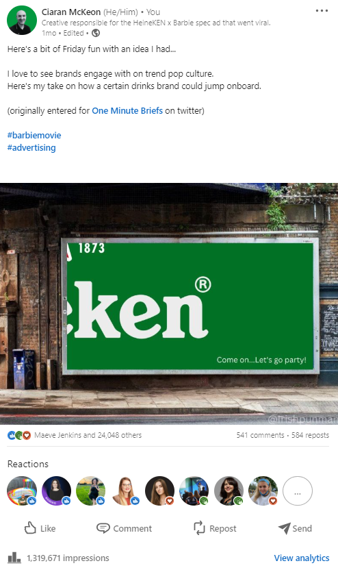 Boy am I glad I did as it turned out to be one of the viral ads of 2023… and it was only a spec ad!